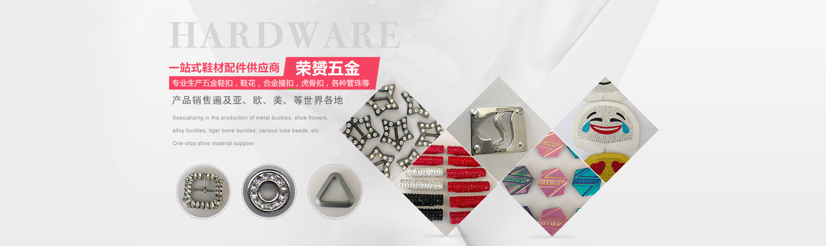 鞋花、胸花一般是指用于女鞋上面的一種類似于花朵現(xiàn)狀的裝飾品,它的原料組成一般有真皮、雪紡、網(wǎng)紗、無紡布、麻布、亞克力、A……